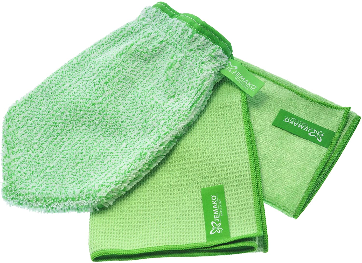 Jemako 3er Set Fenster-Set Reinigungshandschuh Trockentuch